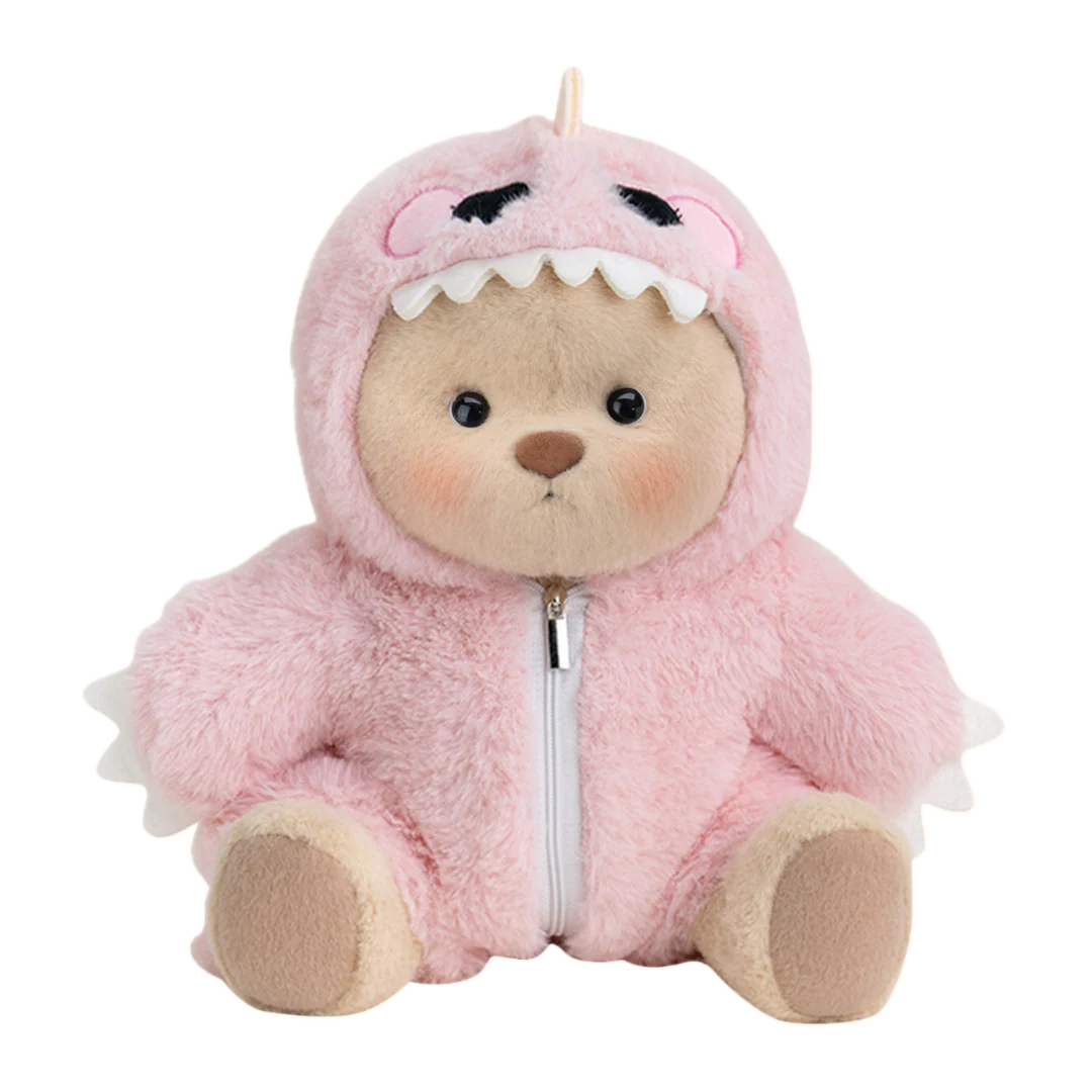 Sweet, playful and full of charm — Pink Dino Teddy steals hearts with her soft pink dinosaur outfit.